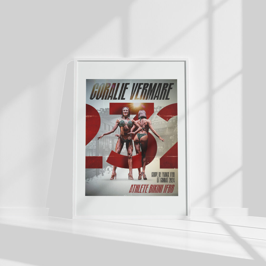 Création d’un poster sportif de l’athlète lors de la Coupe de France IFBB 2024.