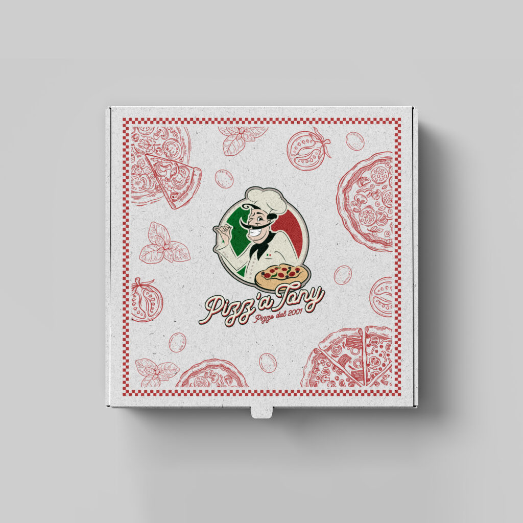 Modernisation du logotype et de l’univers de marque. Création du design des boites à pizzas.